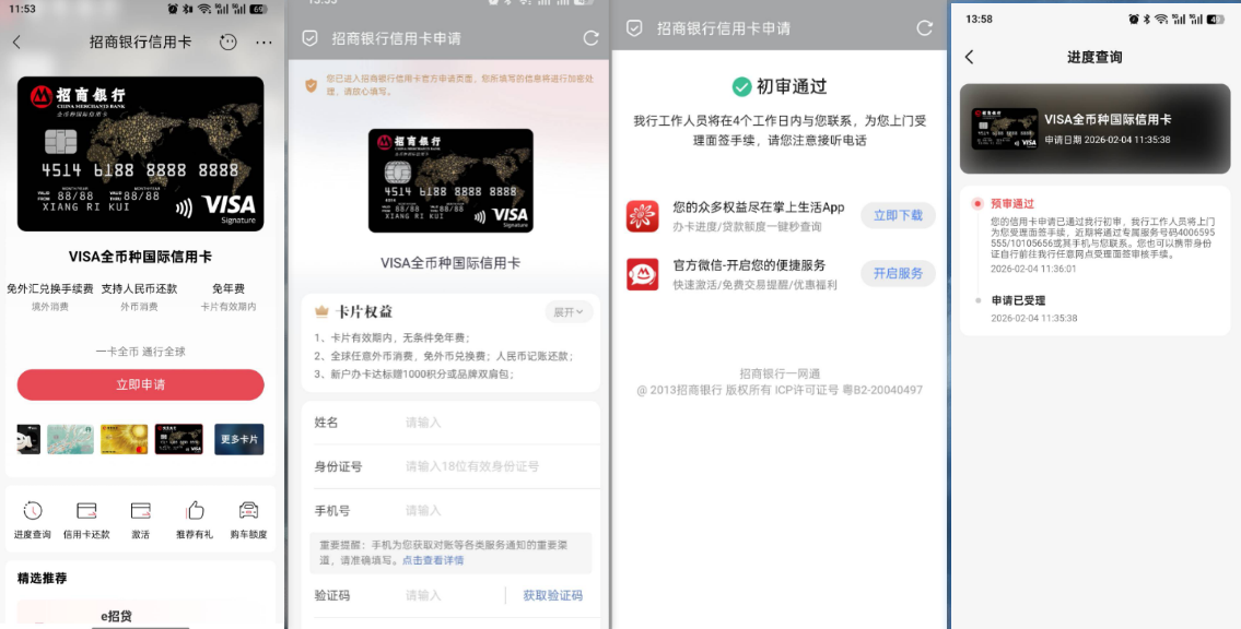 申请入口:招行官网、APP、小程序(甚至在高德搜”招商银行“也能看到申请入口)