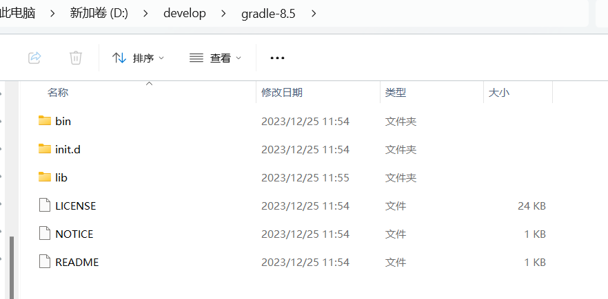 我的解压路径为:D:\develop\gradle-8.5,如下图。
