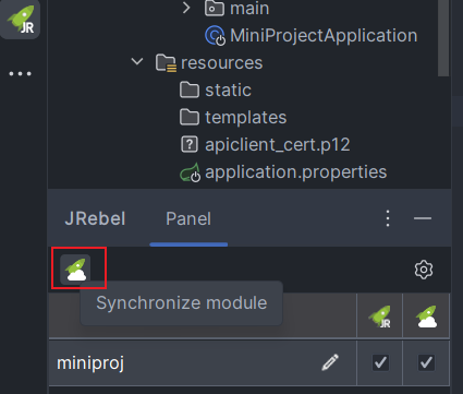 或者点击下图的 Synchronize module 的 JRebel 按钮(这个一般不用)。