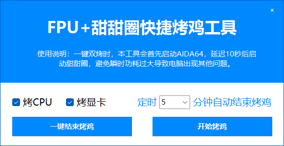 【一键烤鸡】是更便捷的双烤软件,设定烤机时间,开始即可。
