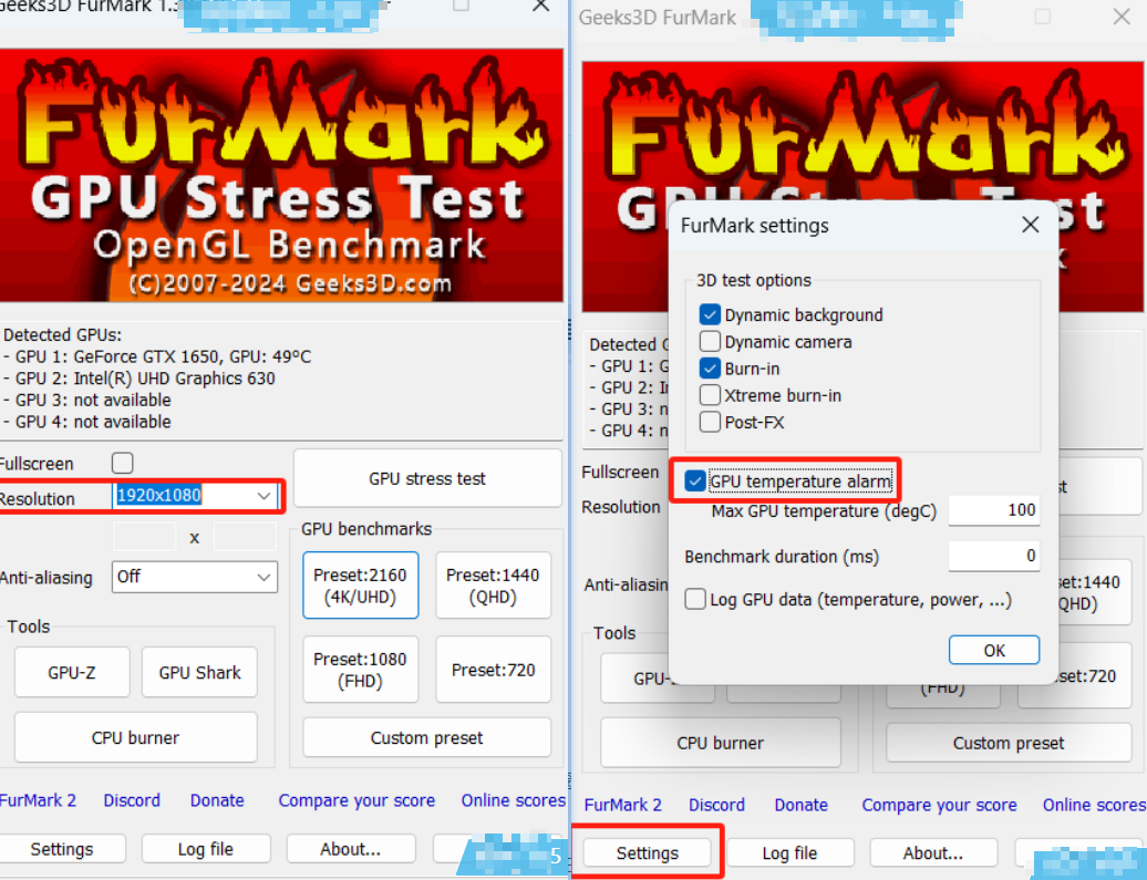 点击 GPU stress test 开始。