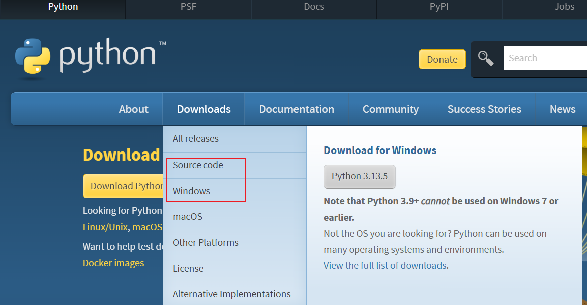 当前 2025/7/5 最新版本为 3.13.5(2025/6/11 发行)