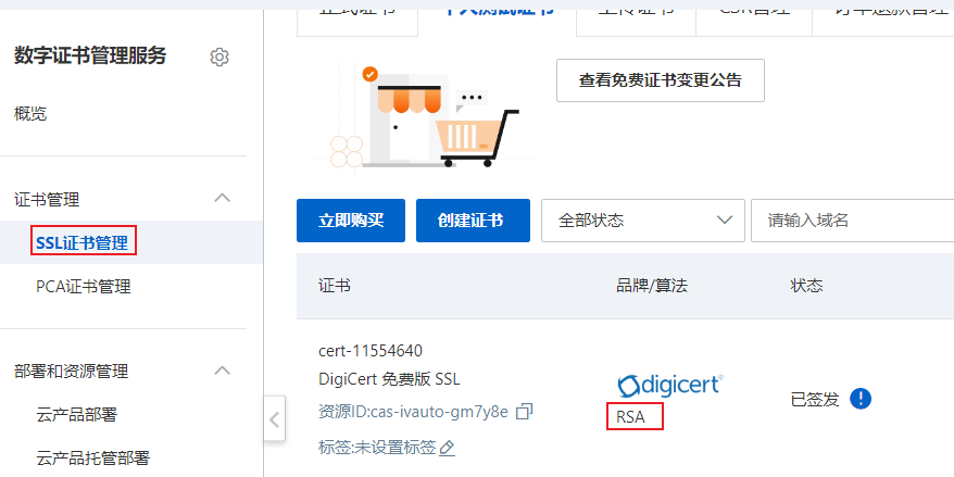 阿里云的证书都是 RSA 加密的,对应上面配置的 type,如下图。