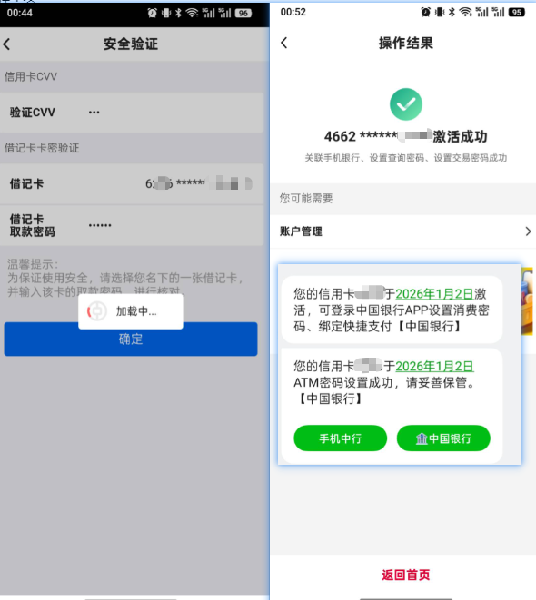 后续等卡片寄到,在线激活就可以正常使用。我是 2月4号完成申请的,6号就送到了。
