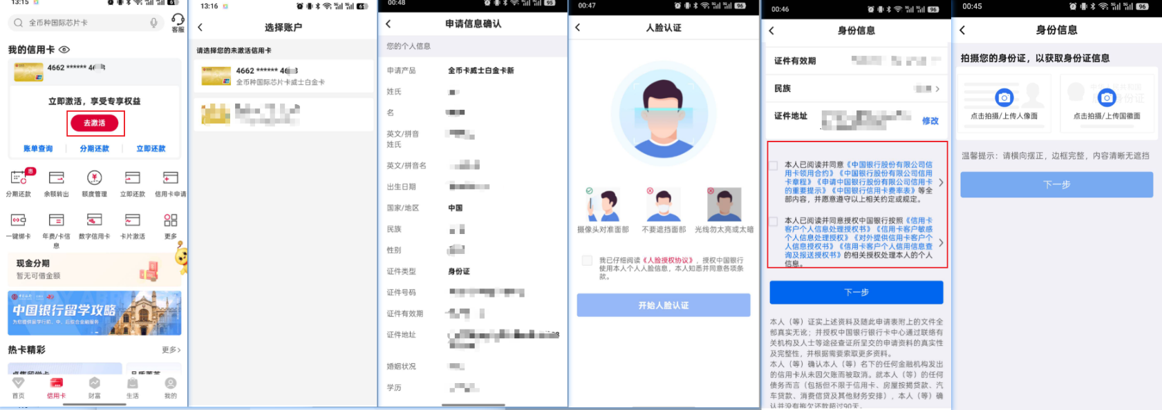 中行 APP 信用卡一栏,点击“去激活”